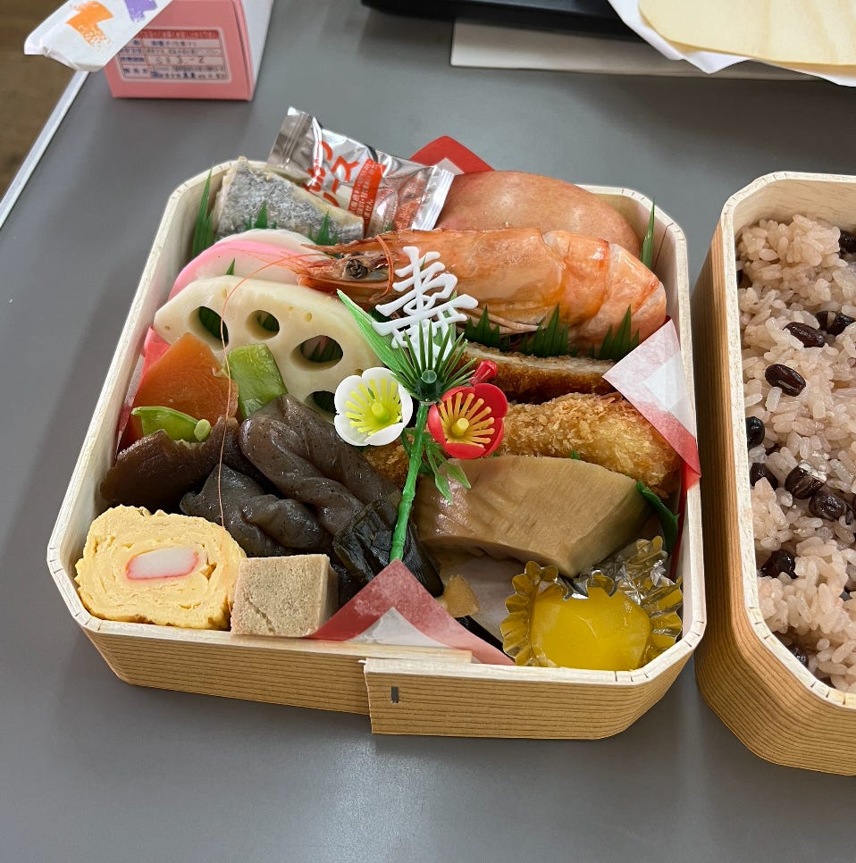 This was supposed to be a late-January check in, then a mid-February check in, but somehow time flew and today is March 1st! Before we get into things, here is the bento. Yesterday was graduation at my school, so teachers had the option to buy a traditional bento lunch. I didn’t originally opt in, but my coworker caught a cold and couldn’t make it, so she let me have her lunch. It was all very delicious. I’m curious how many things in the photo you all recognize!